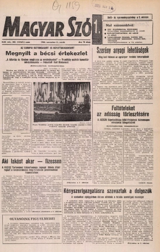 Magyar Szó, 43. évf. 1986. november 5. 305. sz. 1–16. oldal