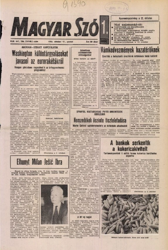Magyar Szó, 43. évf. 1986. október 17. 286. sz. 1–24. oldal