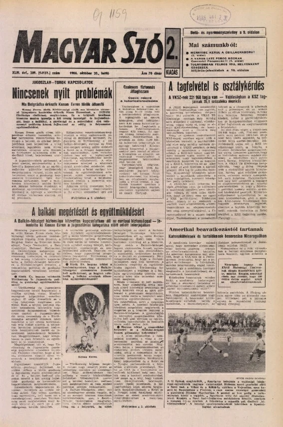 Magyar Szó, 43. évf. 1986. október 20. 289. sz. 1–20. oldal