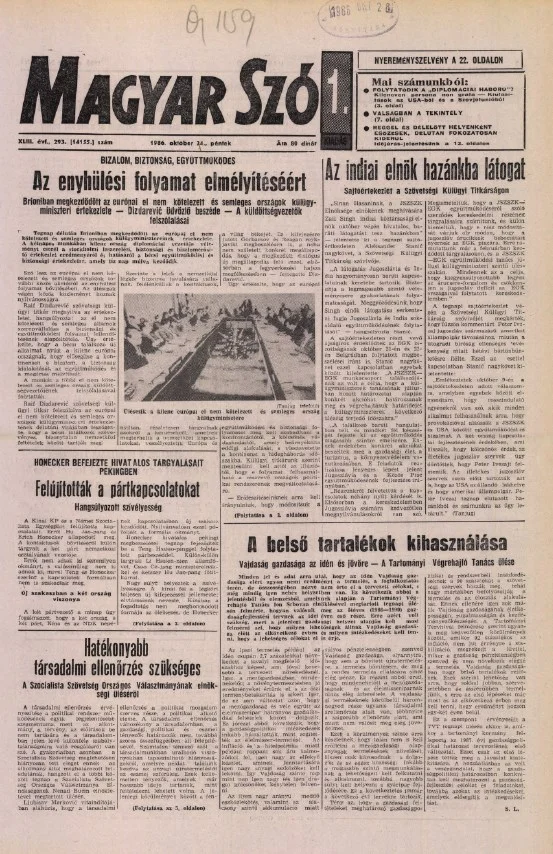 Magyar Szó, 43. évf. 1986. október 24. 293. sz. 1–24. oldal
