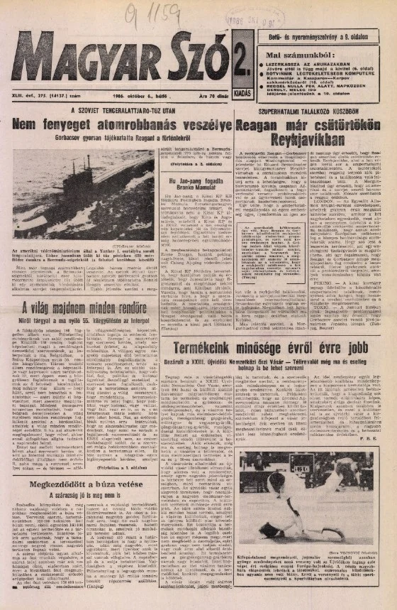 Magyar Szó, 43. évf. 1986. október 6. 275. sz. 1–20. oldal