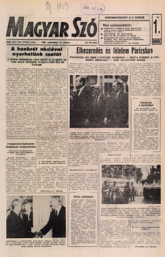 Magyar Szó, 43. évf. 1986. szeptember 19. 258. sz. 1–24. oldal