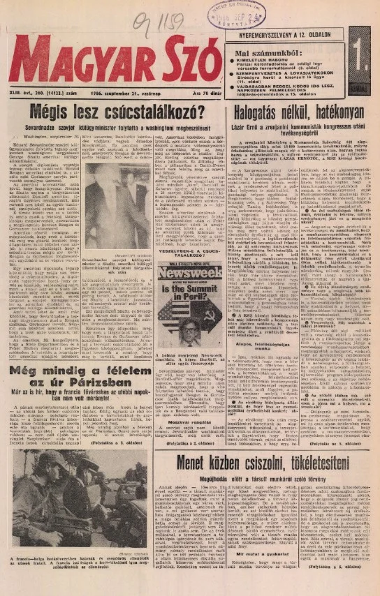 Magyar Szó, 43. évf. 1986. szeptember 21. 260. sz. 1–28. oldal