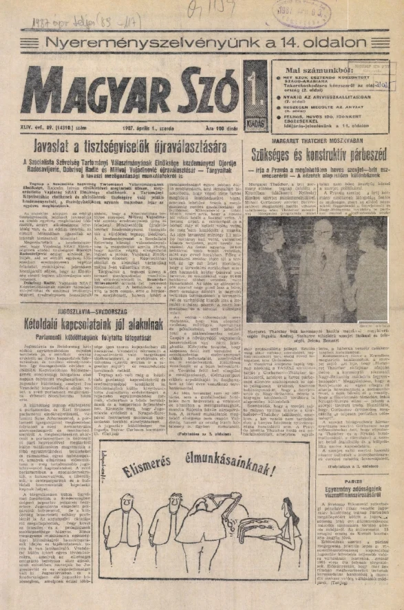 Magyar Szó, 44. évf. 1987. április 1. 89. sz. 1–16. oldal