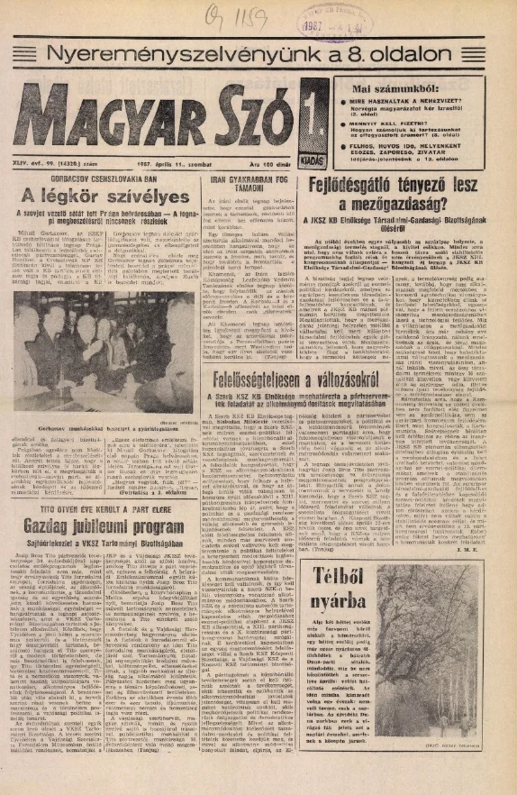 Magyar Szó, 44. évf. 1987. április 11. 99. sz. 1–24. oldal