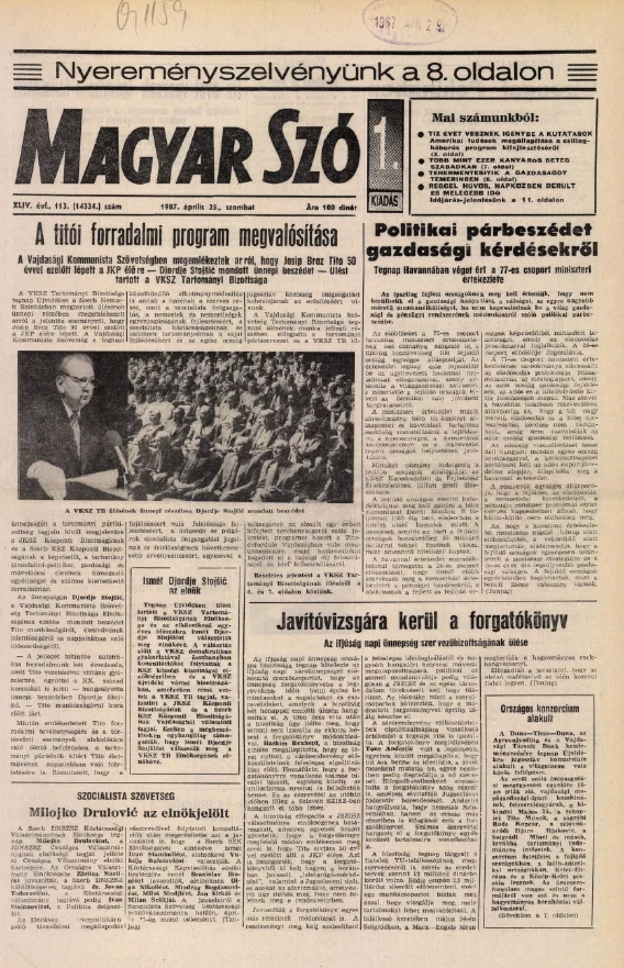 Magyar Szó, 44. évf. 1987. április 25. 113. sz. 1–24. oldal