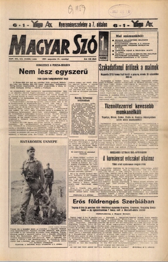 Magyar Szó, 44. évf. 1987. augusztus 15. 223. sz. 1–20. oldal