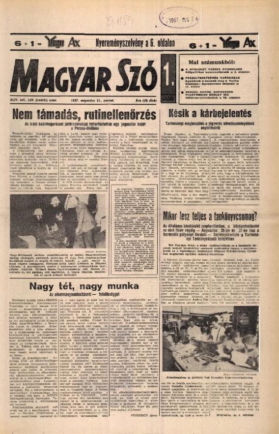 Magyar Szó, 44. évf. 1987. augusztus 21. 229. sz. 1–20. oldal