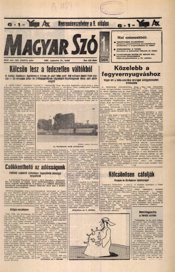 Magyar Szó, 44. évf. 1987. augusztus 25. 233. sz. 1–20. oldal