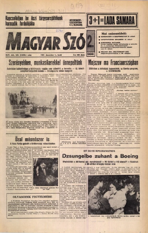 Magyar Szó, 44. évf. 1987. december 1. 329. sz. 1–20. oldal