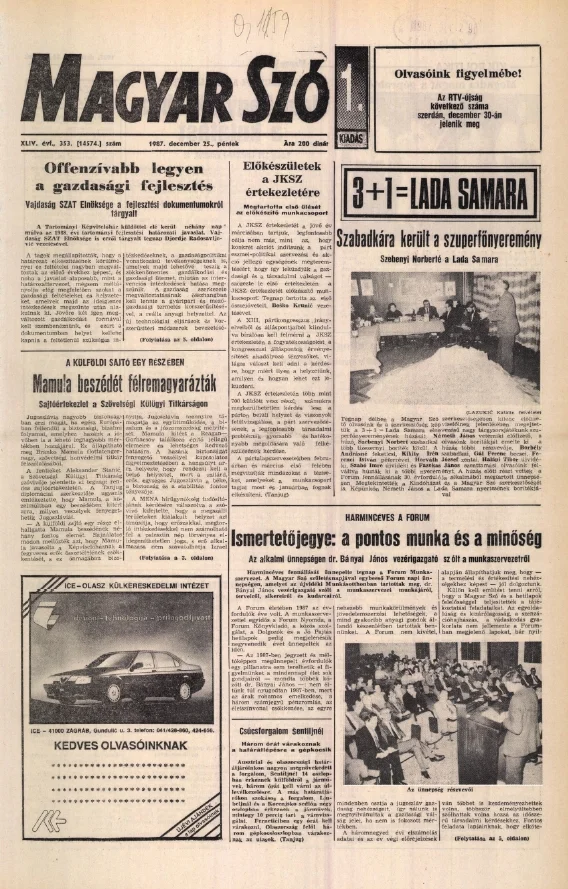 Magyar Szó, 44. évf. 1987. december 25. 353. sz. 1–20. oldal