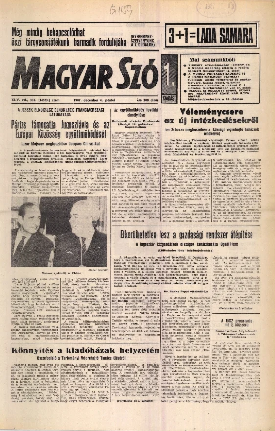 Magyar Szó, 44. évf. 1987. december 4. 332. sz. 1–20. oldal