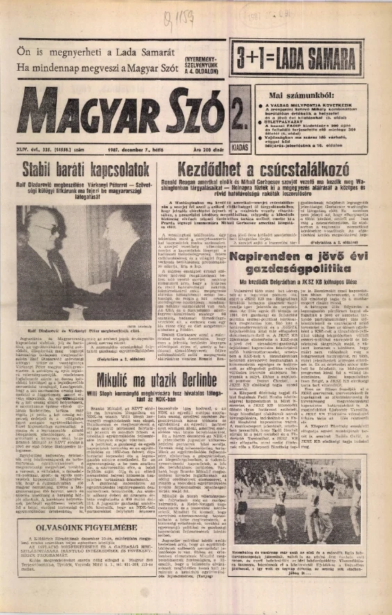 Magyar Szó, 44. évf. 1987. december 7. 335. sz. 1–20. oldal