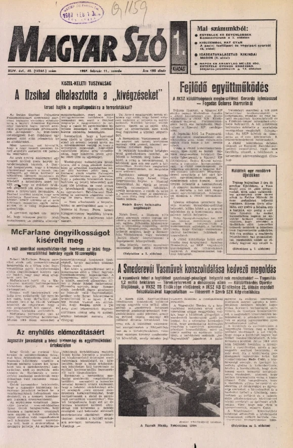Magyar Szó, 44. évf. 1987. február 11. 40. sz. 1–16. oldal