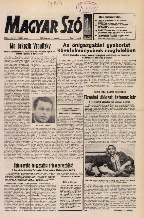 Magyar Szó, 44. évf. 1987. február 18. 47. sz. 1–16. oldal