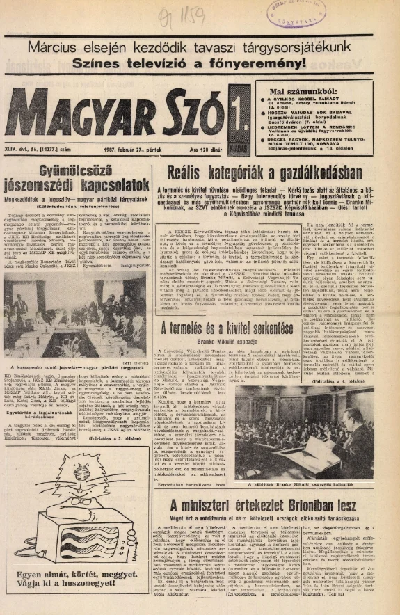 Magyar Szó, 44. évf. 1987. február 27. 56. sz. 1–24. oldal