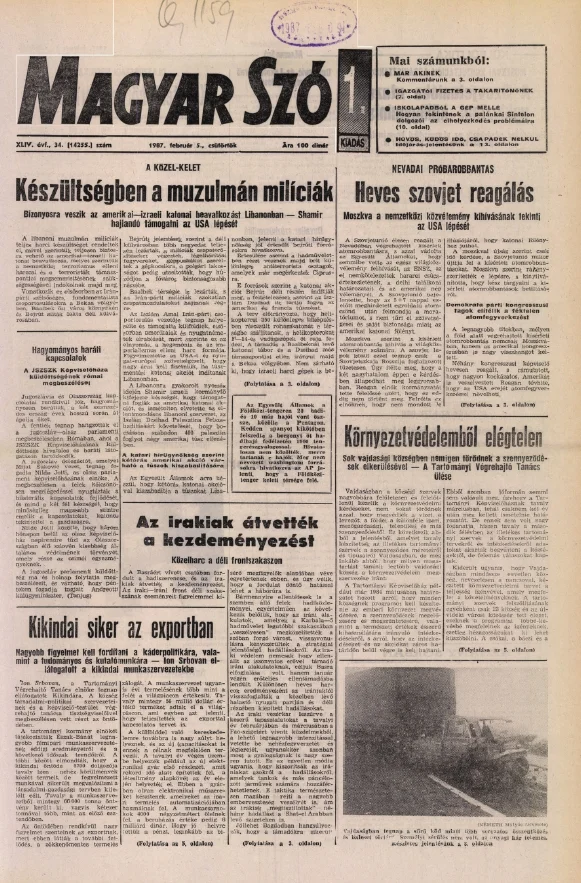Magyar Szó, 44. évf. 1987. február 5. 34. sz. 1–20. oldal