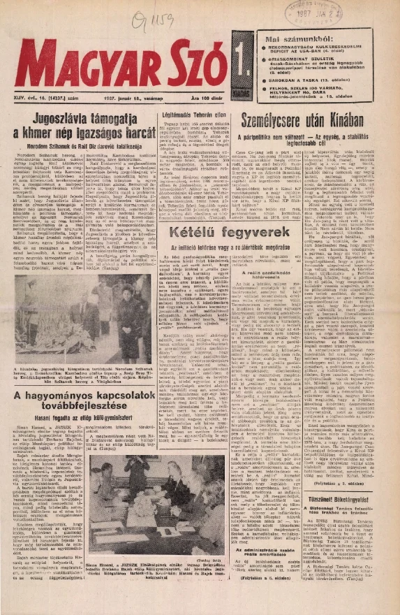 Magyar Szó, 44. évf. 1987. január 18. 16. sz. 1–28. oldal