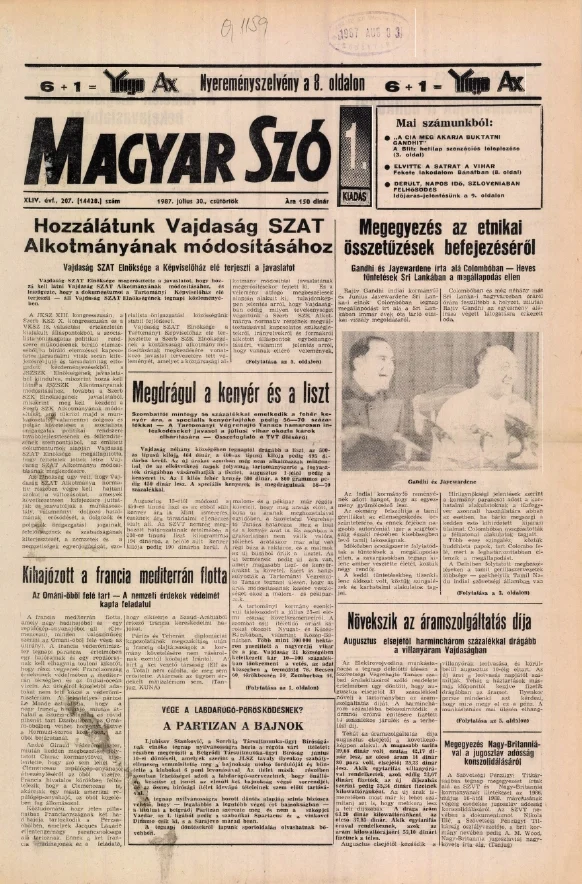 Magyar Szó, 44. évf. 1987. július 30. 207. sz. 1–16. oldal