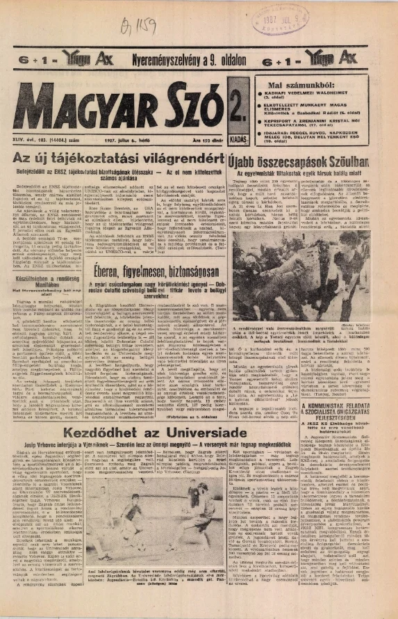 Magyar Szó, 44. évf. 1987. július 6. 183. sz. 1–20. oldal