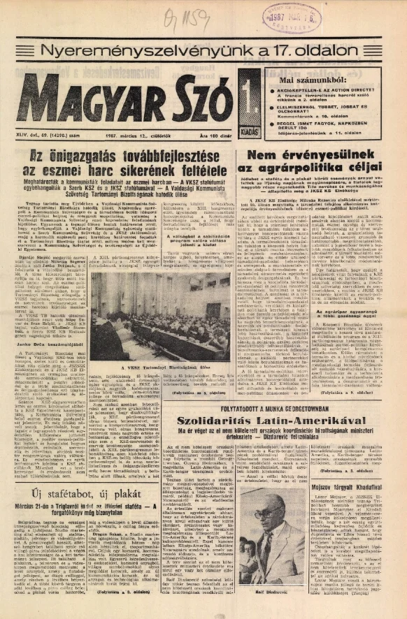 Magyar Szó, 44. évf. 1987. március 12. 69. sz. 1–20. oldal