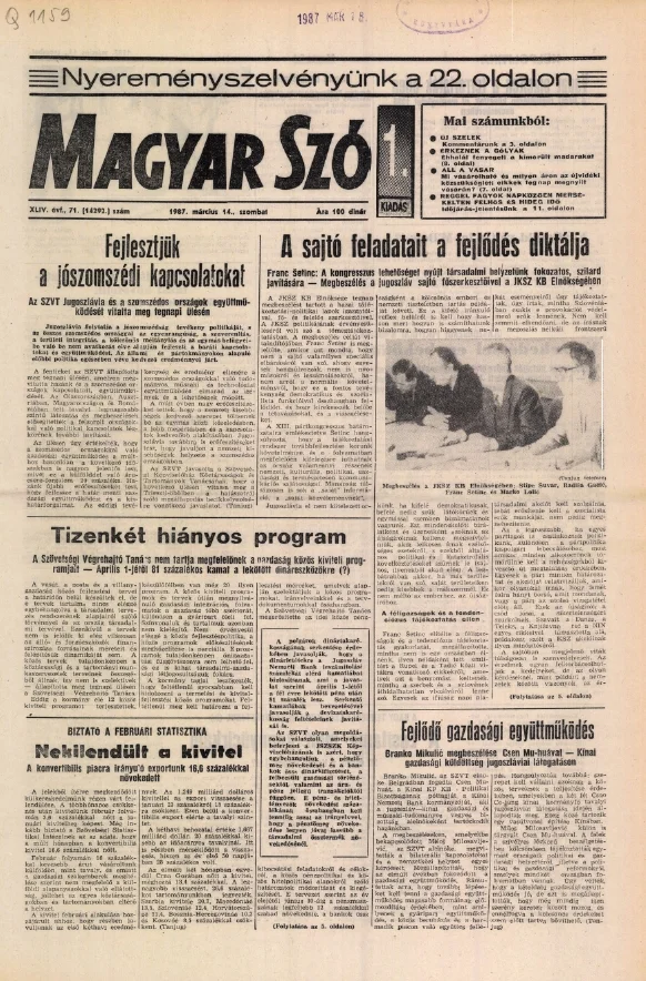 Magyar Szó, 44. évf. 1987. március 14. 71. sz. 1–24. oldal