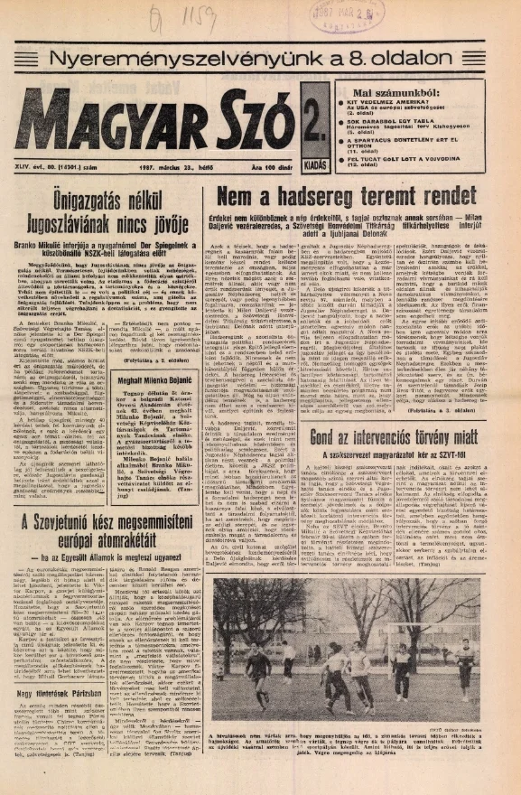 Magyar Szó, 44. évf. 1987. március 23. 80. sz. 1–20. oldal