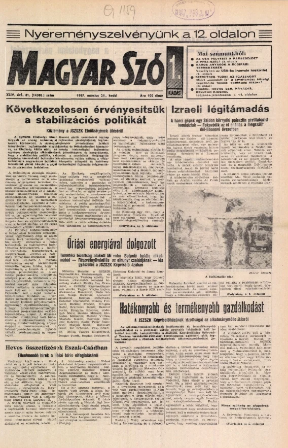 Magyar Szó, 44. évf. 1987. március 24. 81. sz. 1–20. oldal