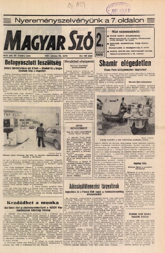 Magyar Szó, 44. évf. 1987. március 30. 87. sz. 1–20. oldal