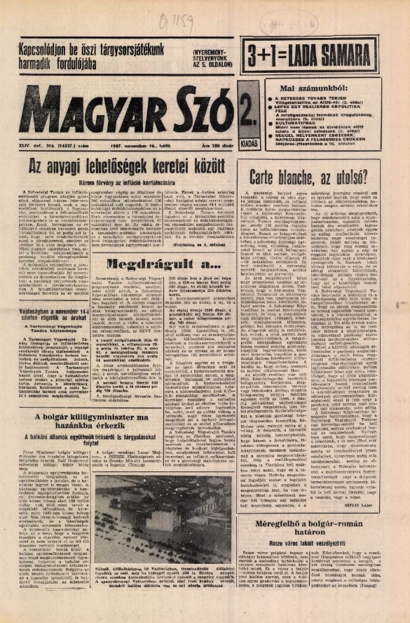 Magyar Szó, 44. évf. 1987. november 16. 316. sz. 1–20. oldal