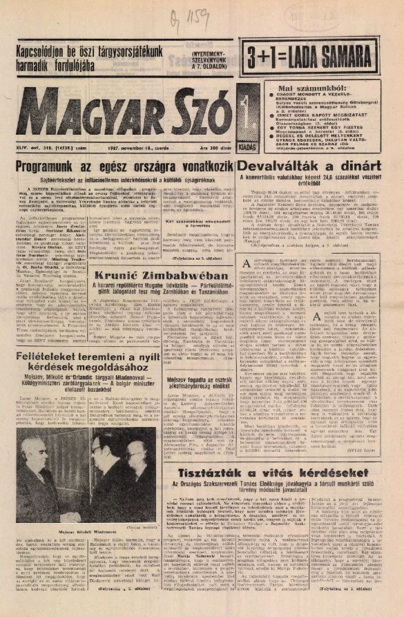 Magyar Szó, 44. évf. 1987. november 18. 318. sz. 1–16. oldal