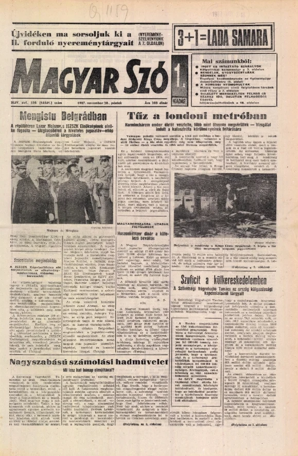 Magyar Szó, 44. évf. 1987. november 20. 320. sz. 1–20. oldal