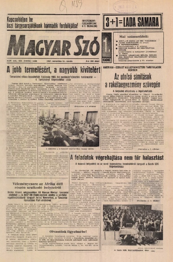 Magyar Szó, 44. évf. 1987. november 25. 325. sz. 1–16. oldal