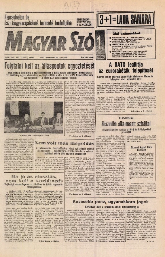 Magyar Szó, 44. évf. 1987. november 26. 326. sz. 1–20. oldal