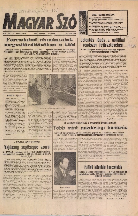 Magyar Szó, 44. évf. 1987. október 1. 270. sz. 1–16. oldal