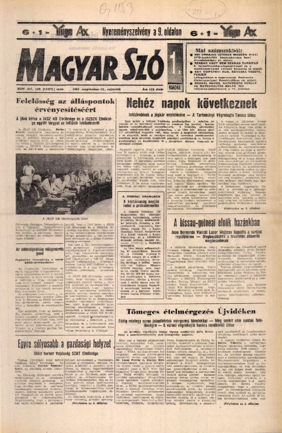 Magyar Szó, 44. évf. 1987. szeptember 10. 249. sz. 1–16. oldal