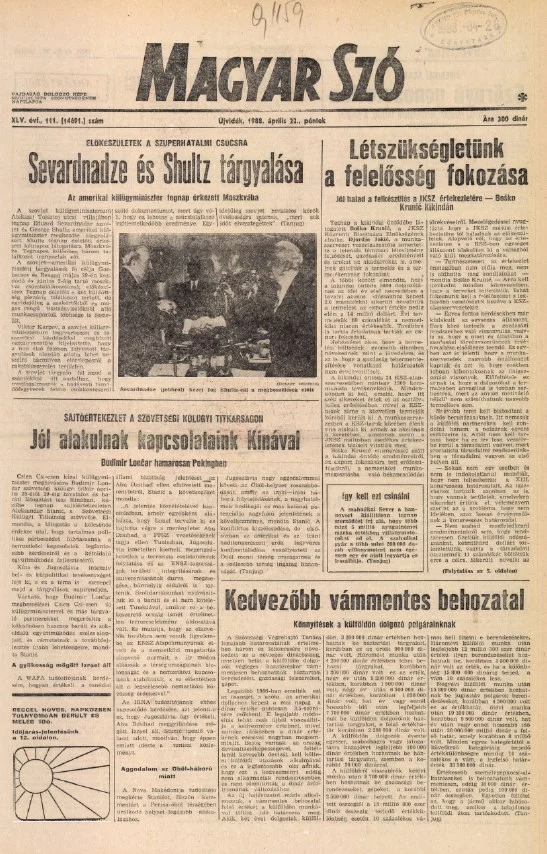 Magyar Szó, 45. évf. 1988. április 22. 111. sz. 1–24. oldal