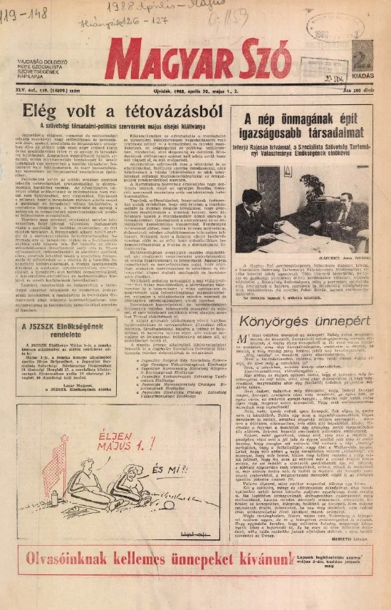 Magyar Szó, 45. évf. 1988. április 30. – május 2. 1–40. oldal