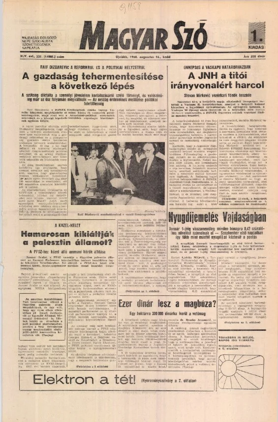Magyar Szó, 45. évf. 1988. augusztus 16. 225. sz. 1–16. oldal