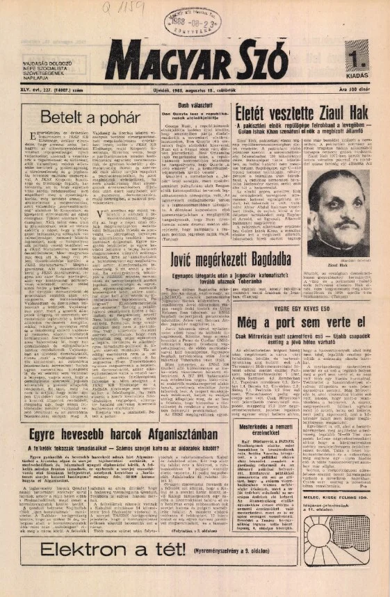 Magyar Szó, 45. évf. 1988. augusztus 18. 227. sz. 1–16. oldal