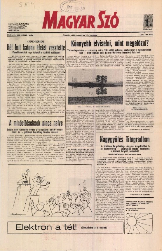 Magyar Szó, 45. évf. 1988. augusztus 21. 230. sz. 1–28. oldal