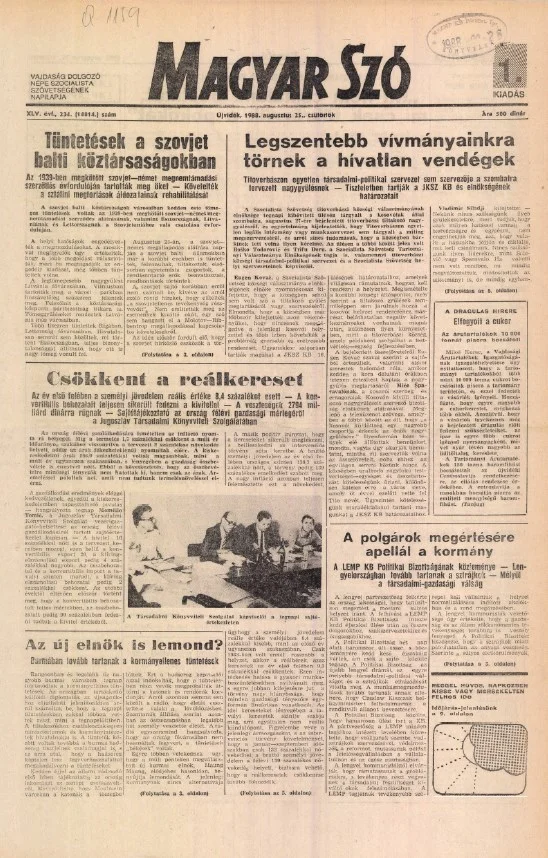 Magyar Szó, 45. évf. 1988. augusztus 25. 234. sz. 1–16. oldal