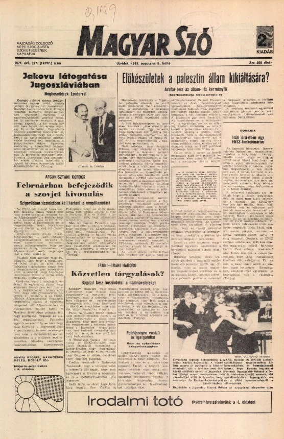 Magyar Szó, 45. évf. 1988. augusztus 8. 217. sz. 1–16. oldal