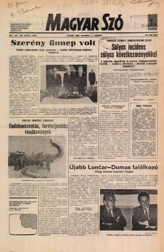 Magyar Szó, 45. évf. 1988. december 1. 330. sz.