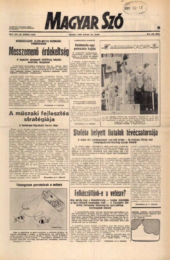 Magyar Szó, 45. évf. 1988. február 16. 45. sz. 1–20. oldal