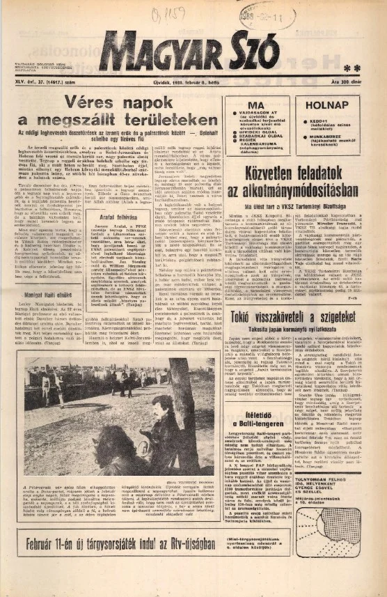 Magyar Szó, 45. évf. 1988. február 8. 37. sz. 1–20. oldal
