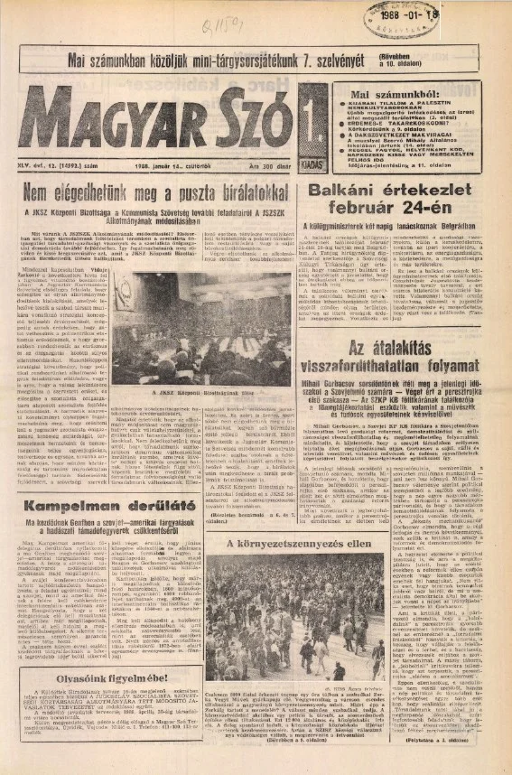 Magyar Szó, 45. évf. 1988. január 14. 12. sz. 1–20. oldal