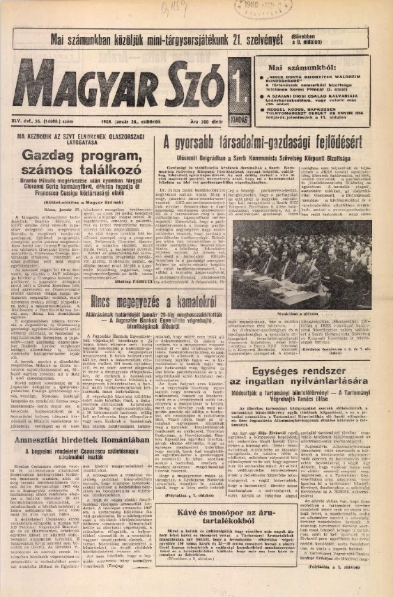 Magyar Szó, 45. évf. 1988. január 28. 26. sz. 1–20. oldal
