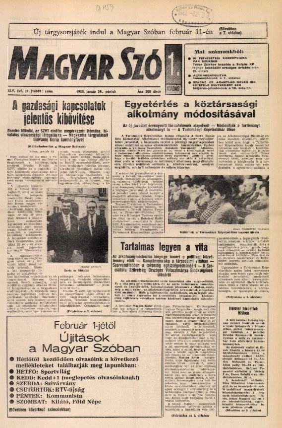 Magyar Szó, 45. évf. 1988. január 29. 27. sz. 1–20. oldal