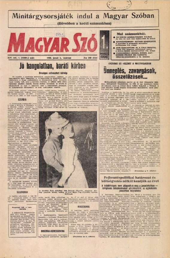 Magyar Szó, 45. évf. 1988. január 3. 1. sz. 1–28. oldal